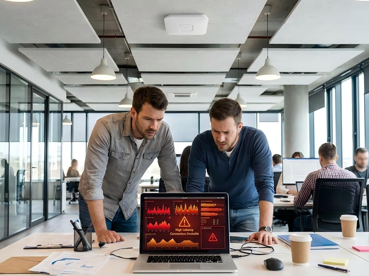 In one open office deployment, signal strength was excellent across the entire floor. Speed tests from a single laptop looked fine. Yet during meetings, video calls froze, screen sharing stuttered, and roaming between rooms caused brief drops.