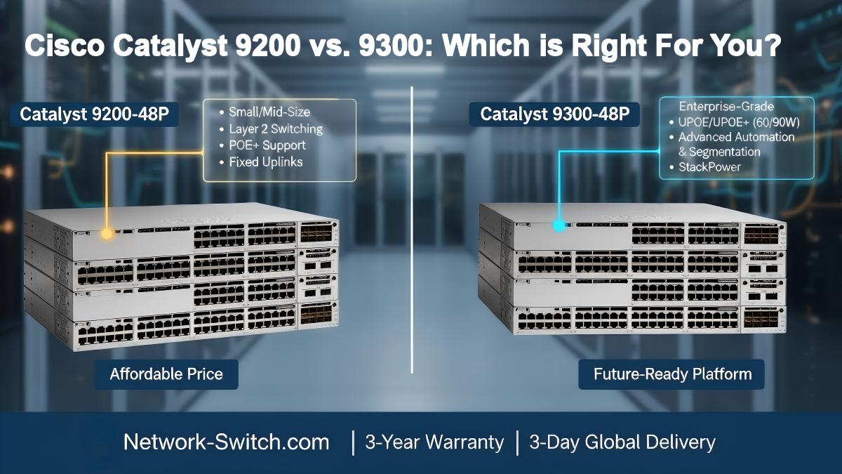 Key Insight: Think of 9200 as the cost-effective access switch and 9300 as the enterprise workhorse with scalability and automation built-in.