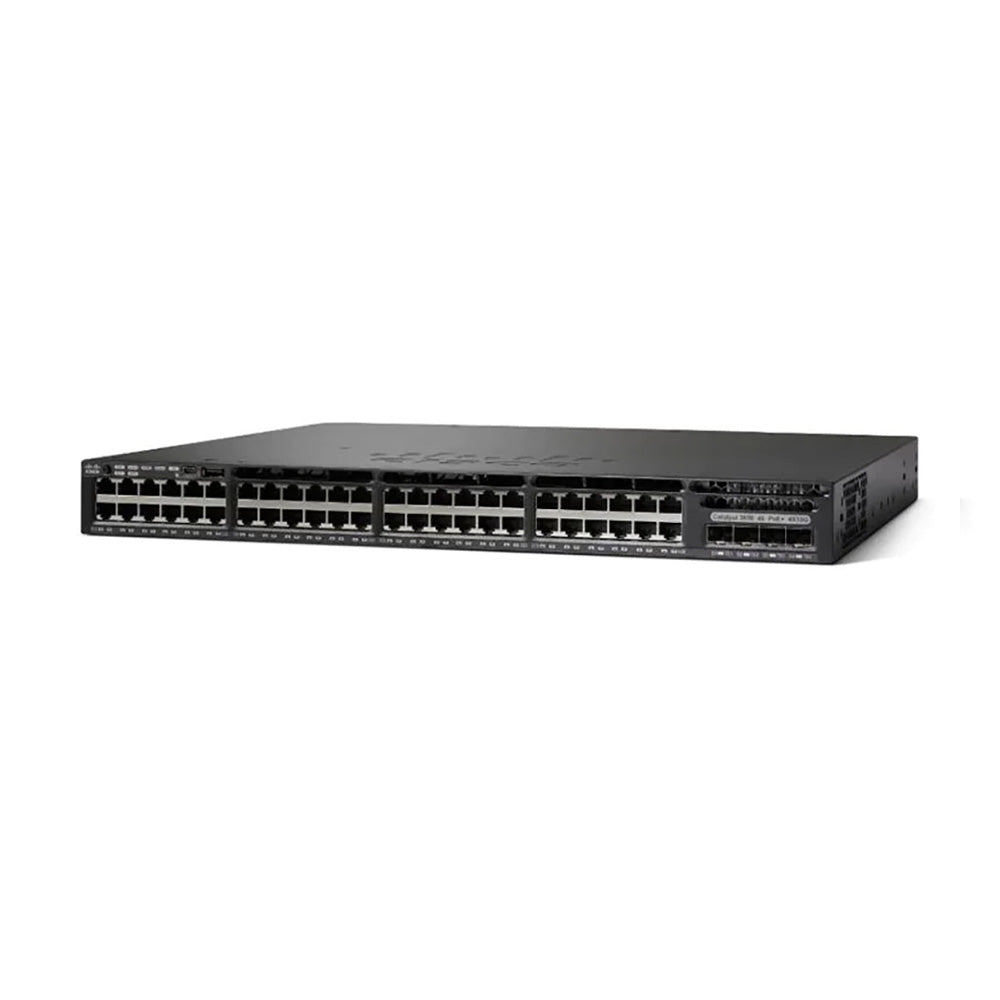 The Cisco Catalyst WS-C3650-48PS-L switch delivers 390W PoE power, providing up to 30W per port across its 48 x 10/100/1000 Ethernet ports. This switch supports Cisco StackWise-160 Technology, allowing for up to 9 stacked units and providing 160 Gbps stack bandwidth for optimal performance. The WS-C3650-48PS-L features 4 x 1G SFP uplink interfaces and is equipped with LAN Base for Layer 2 and basic Layer 3 functionality, making it perfect for Cisco Aggregation Switch applications. With 77.37Mpps forwarding performance and 176Gbps switching capacity, it ensures fast and efficient data transfer. The switch is rack-mountable, featuring a 1U form factor, and comes with 4GB RAM and 2GB flash memory to support demanding network tasks. This model is designed to support 50 APs and 1000 wireless clients per switch or stack. Shop Cisco Switch models like the WS-C3650-48PS-L to experience PoE+ capabilities, SFP uplink connectivity, and the flexibility of LAN Base in a rack-mountable design.