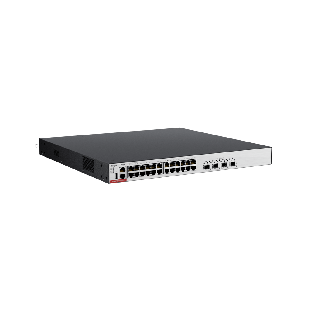 • Versatile: The RG-S5310-24GT4XS-E features 24 Gbps Ethernet ports and 4 SFP+ uplink ports, providing flexible connectivity options to match diverse network topologies and requirements.