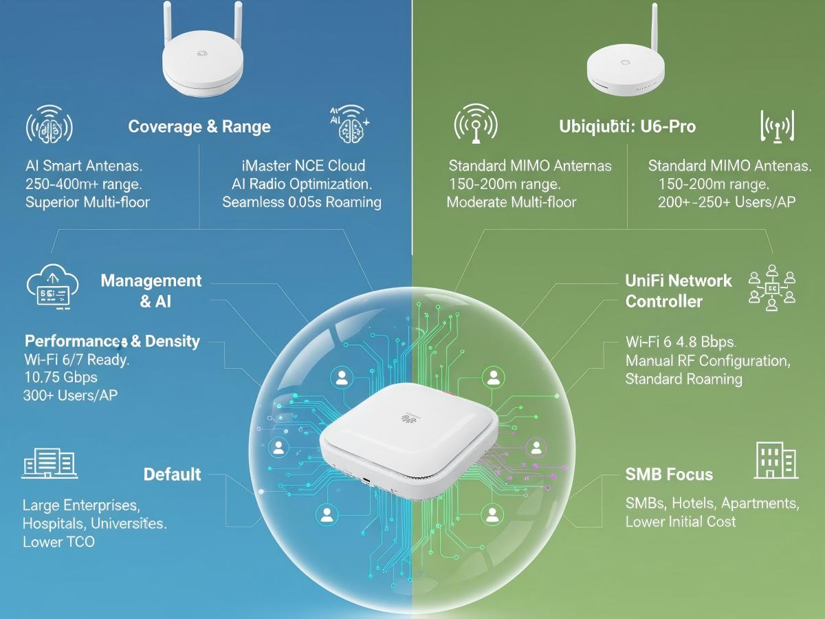 Summary: Huawei’s enterprise wireless AP dominates high-density environments, while Ubiquiti remains a good option for low-cost, moderate-performance networks.